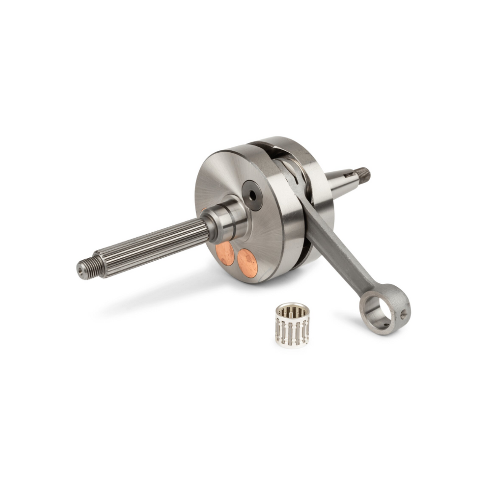 Dank der internen Leichtbaukonstruktion auf der Schulterseite und Kupfergegengewichten auf der anderen Seite sorgt diese Kurbelwelle für einen ausgewogenen Betrieb ohne Vibrationen. Die geschmiedete Pleuelstange mit Silberschmiedefinish garantiert Langlebigkeit und Zuverlässigkeit, auch bei hoher Belastung.
