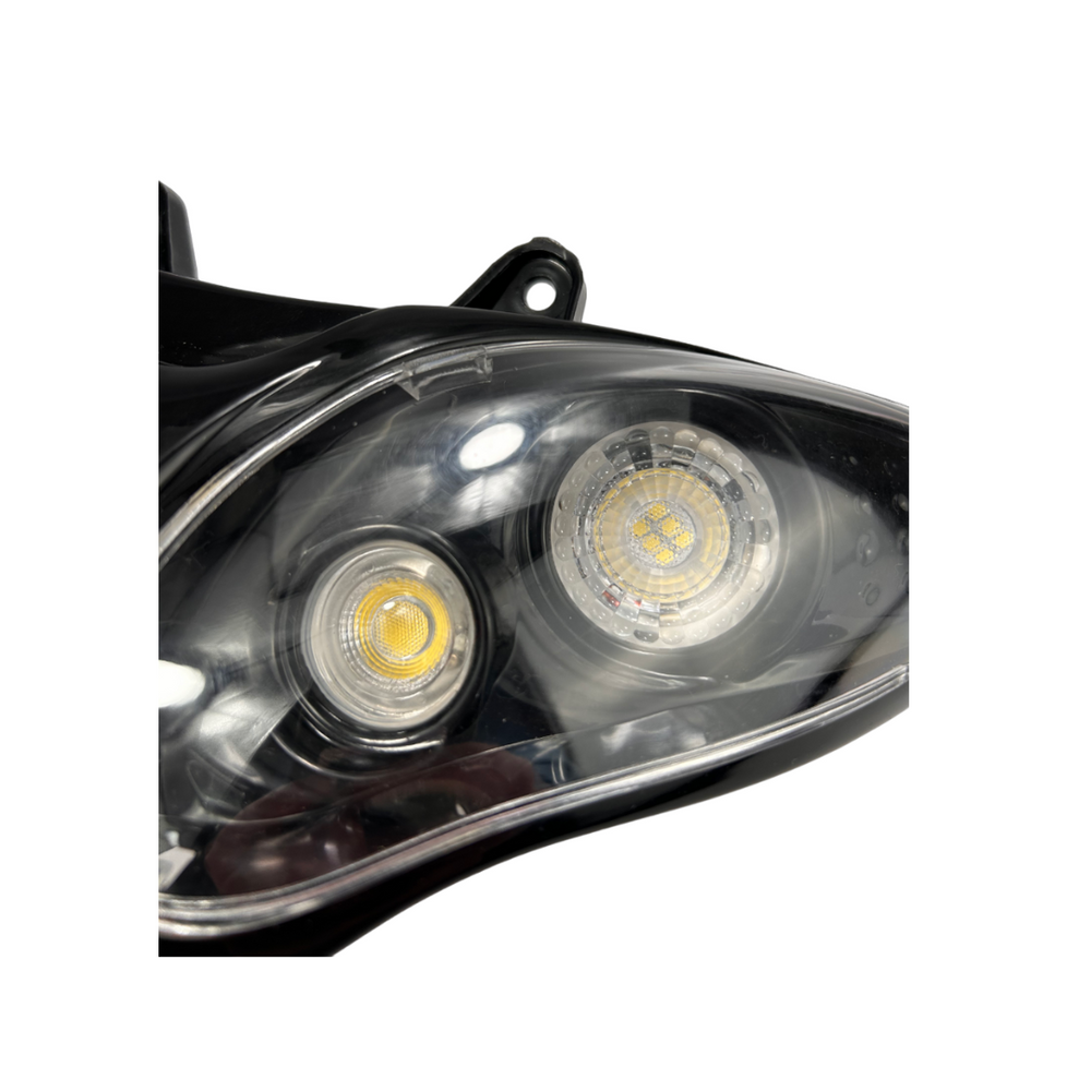 Lighten your driving experience and lift the appearance of your Gilera Runner to a higher level with our LED headlight. Designed for optimum performance and a perfect fit on the Gilera Runner, this headlight offers advanced LED technology for clear and efficient lighting. Increase your visibility on the road and give your scooter a contemporary, modern look. With durable materials and a stylish design, this LED headlight is a must-have upgrade for every Gilera Runner owner who strives for a unique and improved driving experience. Order today and enjoy the benefits of clear, energy -efficient lighting on your Gilera Runner!