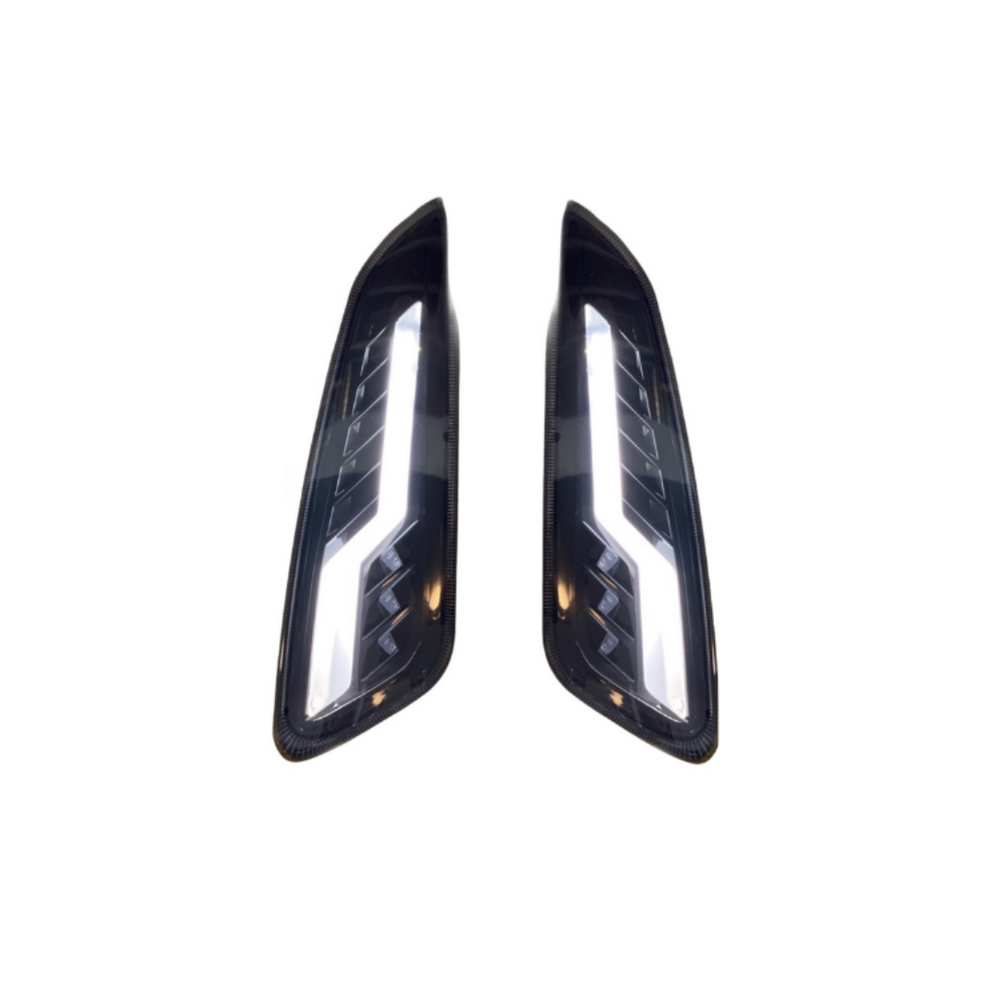 The Level10 LED flashing lights for the Vespa Sprint offer a unique, sporty look and improved visibility. The lighting is equipped with lightning bolt daytime running lights and flashing lights, so that your scooter not only looks stylish, but is also safer on the road. These flashing lights fit perfectly on the Vespa Sprint and Primavera models.