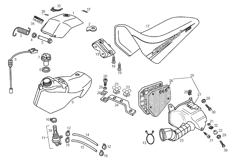 Derbi Senda SM 50 2T 2ª ED DRD 2002-2003 - Benzinetank, Zadel & Luchtfilter
