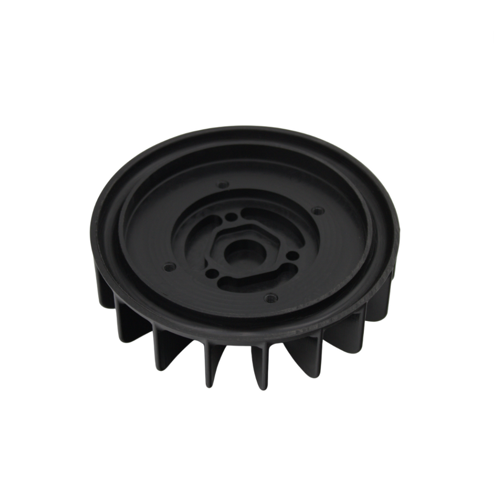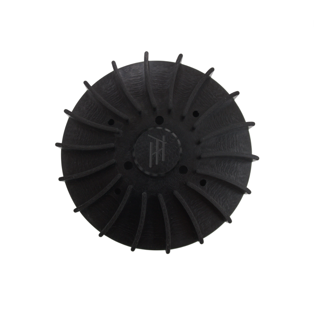 Deze HT koelvin is CNC-gefreesd uit hoogwaardig kunststof en ontworpen als directe upgrade voor originele koelkap-systemen van Piaggio Maxi motorblokken. Dankzij de 7% grotere diameter en speciaal gebogen schoepen levert de koelvin een merkbaar hogere luchtstroom. Het resultaat: betere cilinderkoeling, ideaal voor sportieve of getunede motoren die extra warmteontwikkeling kennen.